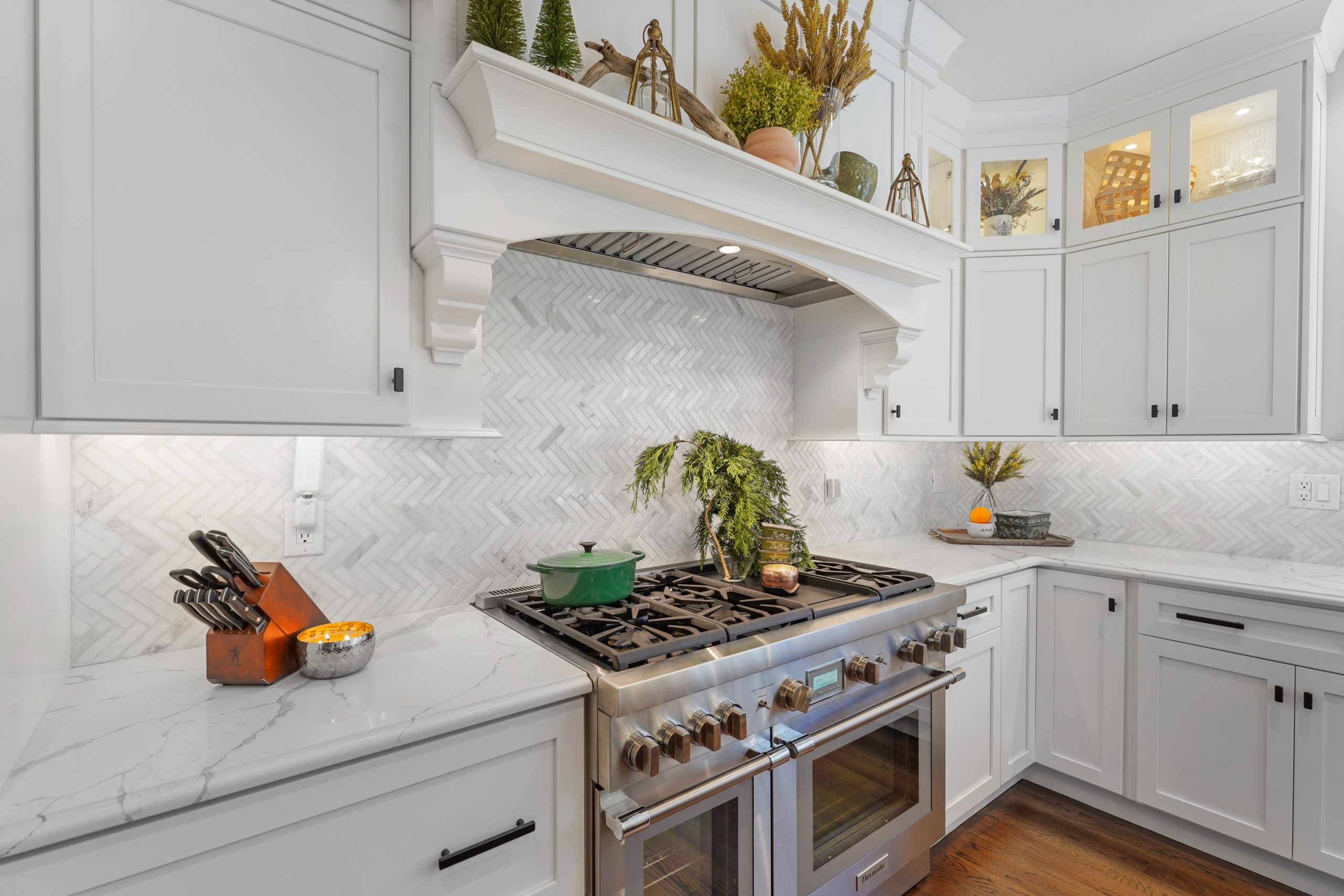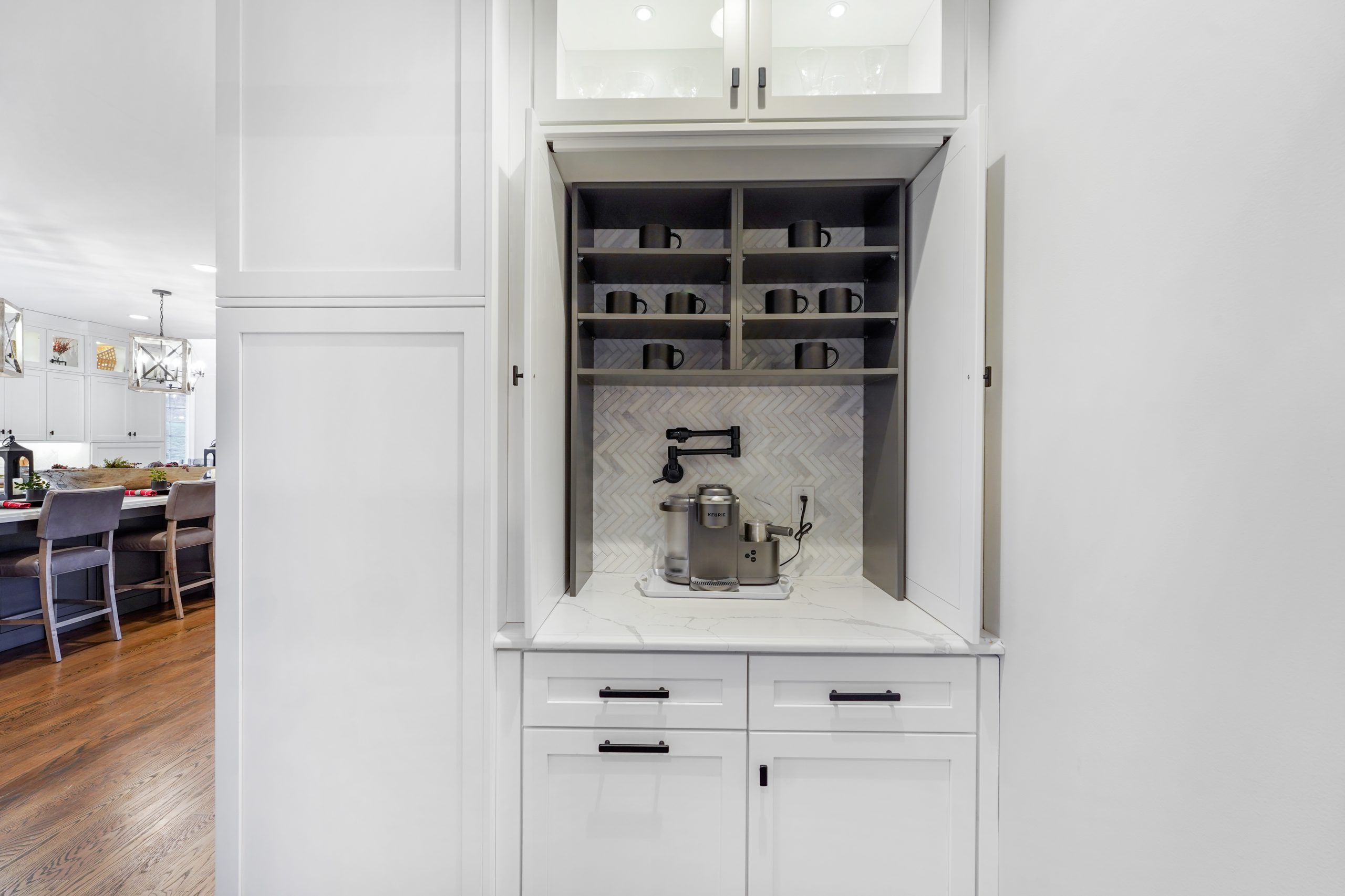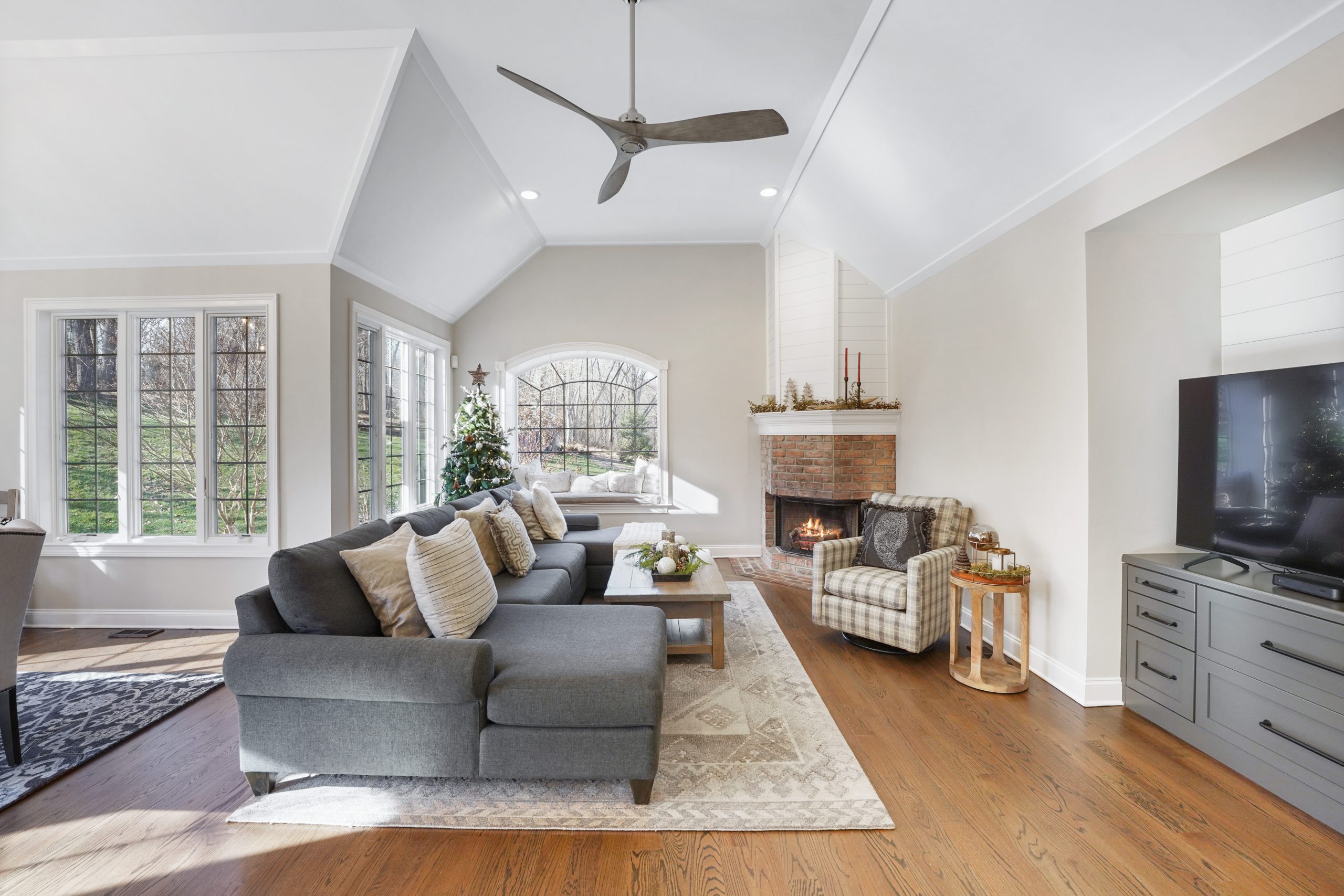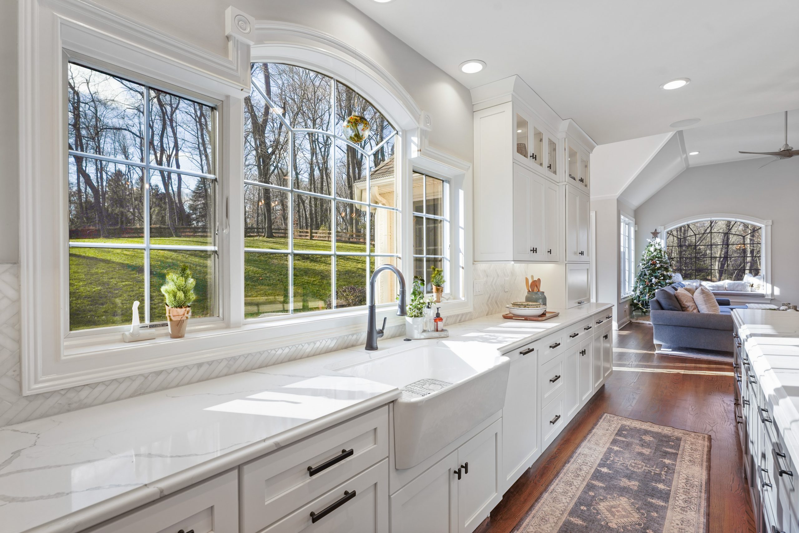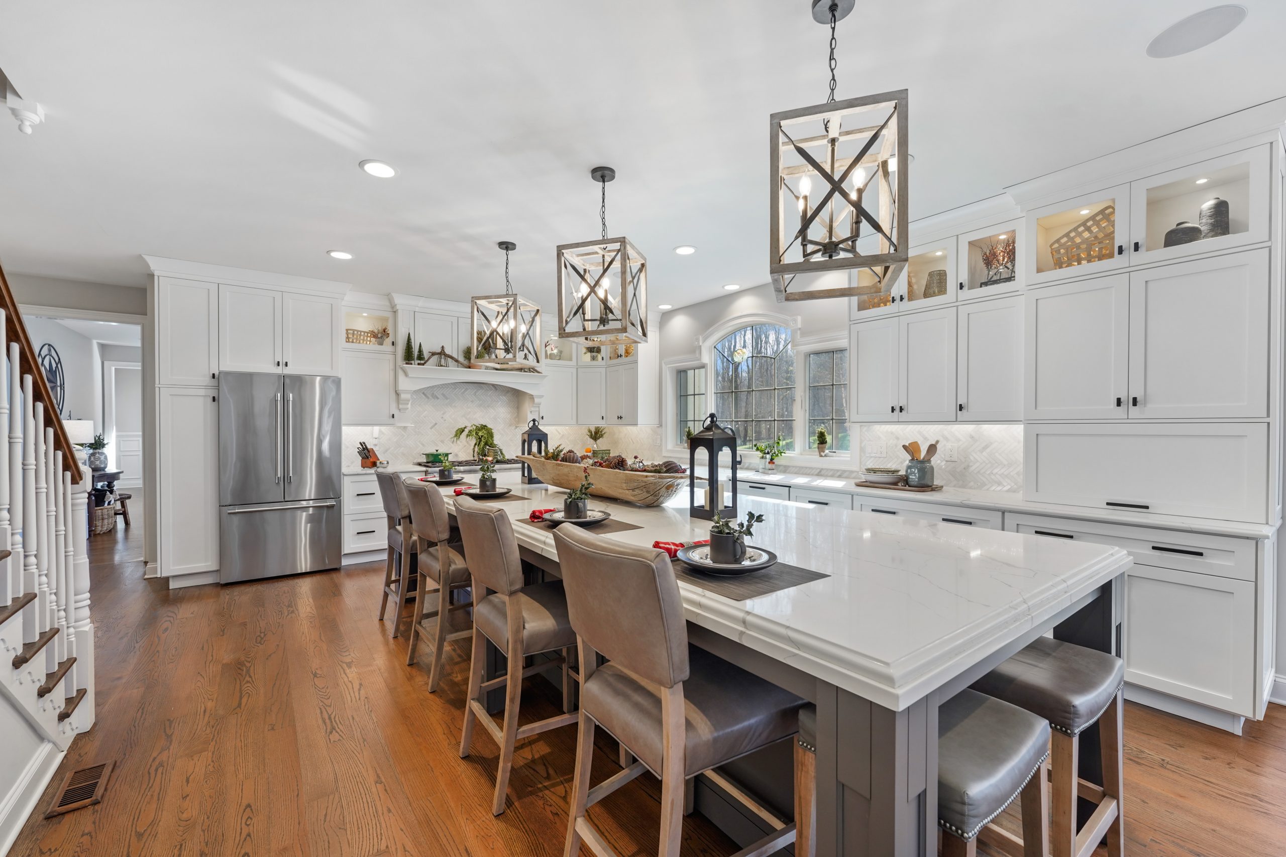 Kitchen renovations are the most popular renovations that we see. This is the area of the home where all families gather and spend the most time. For this project we had the space we needed without any additions so the focus became the design and colors of the kitchen to maximum the potential of this home. The growing trend seems to be large islands and this kitchen may have the largest island we have built. Along with the kitchen, trim updated were done in the keeping room, new brick floors were installed in the mudroom and study, the Owner’s Suite was redone with ship lap walls and ceiling, and all the site finished hardwood floors throughout the home were sanded down and restained.